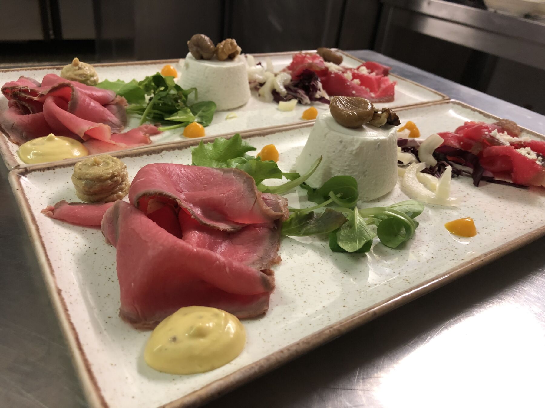 Sottopaletta di Fassona cotta in bassa temperatura servita con contorno